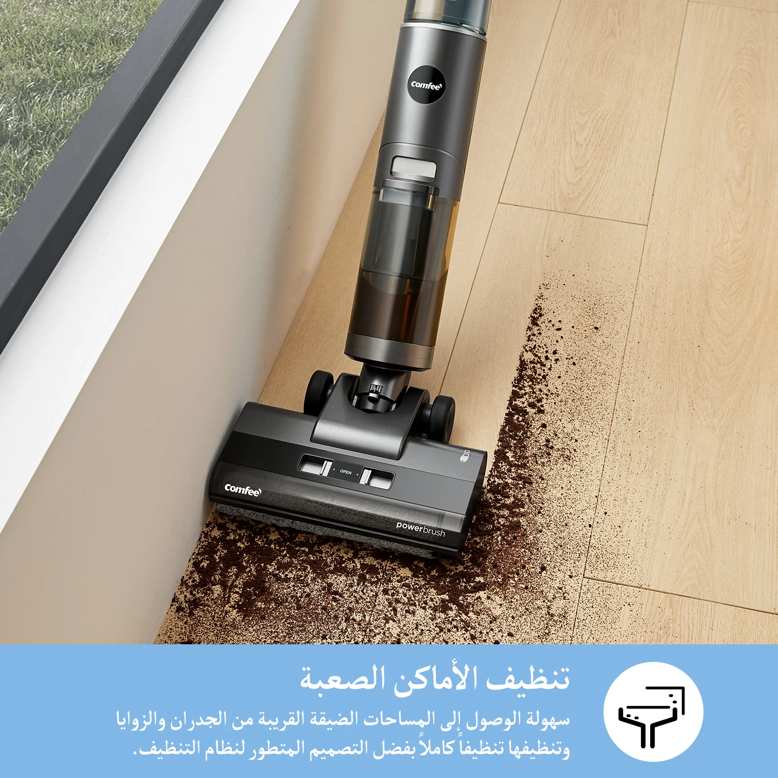 يمكن للمكنسة الكهربائية الرطبة والجافة GX5 الوصول إلى المساحات الضيقة ، بالقرب من الجدران ، وفي الزوايا لتنظيفها جيدًا بتصميم تنظيف إلى الحافة.