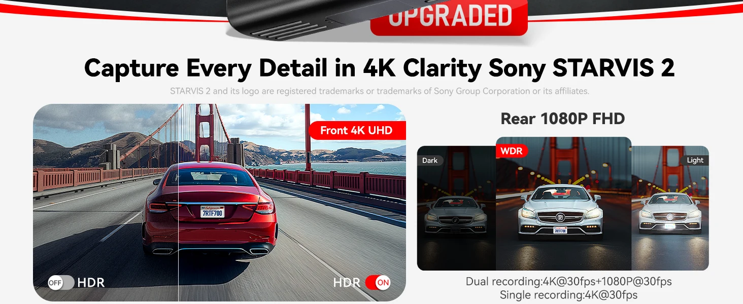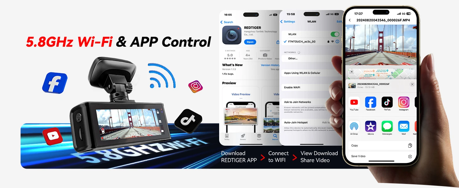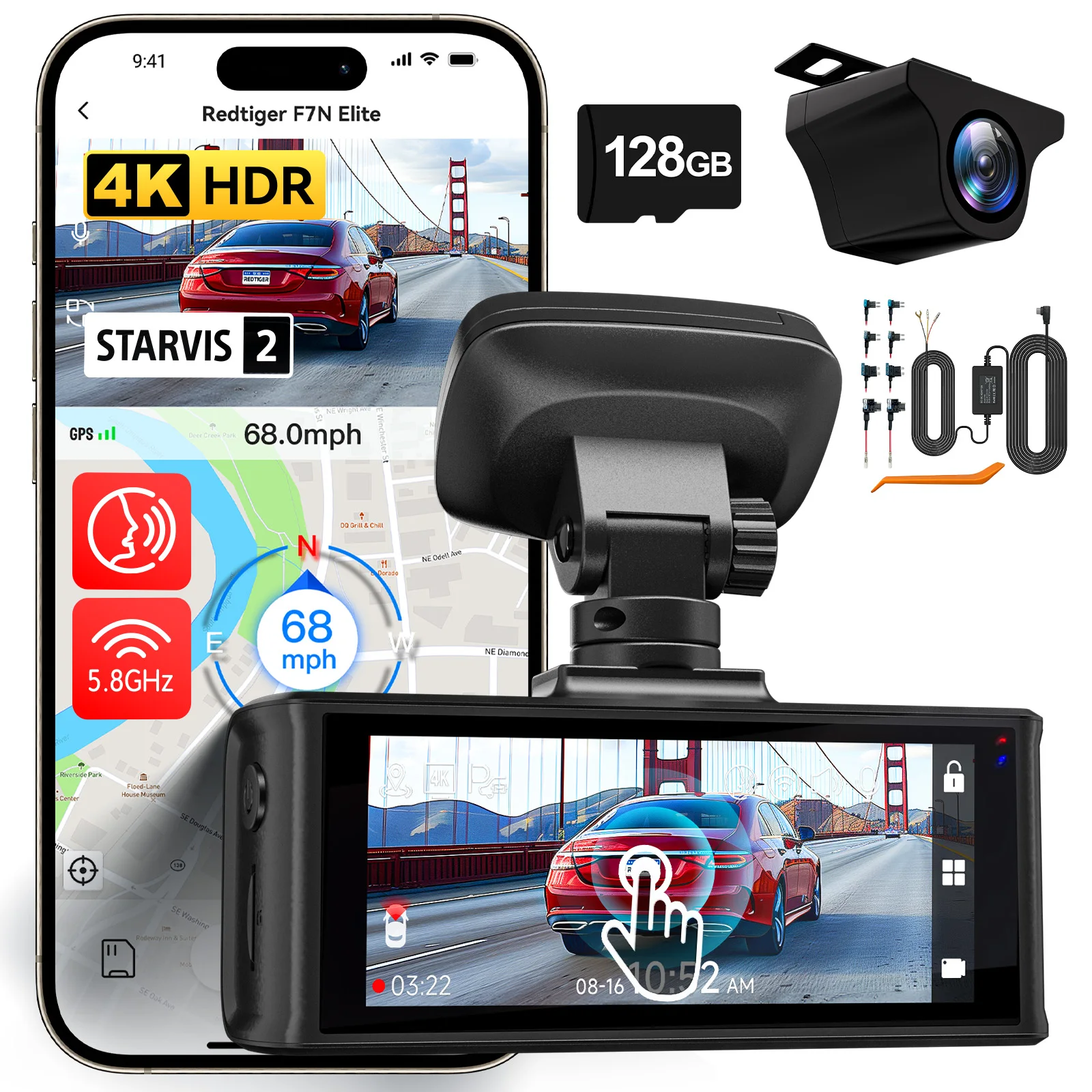 REDTIGER F7N ELITE STARVIS 2 مستشعر 4K HDR Dash Cam أمامي وخلفي 5.8 جيجا هرتز WiFi APP كاميرا سيارة WDR dvr لوضع ركن السيارة 24 ساعة (